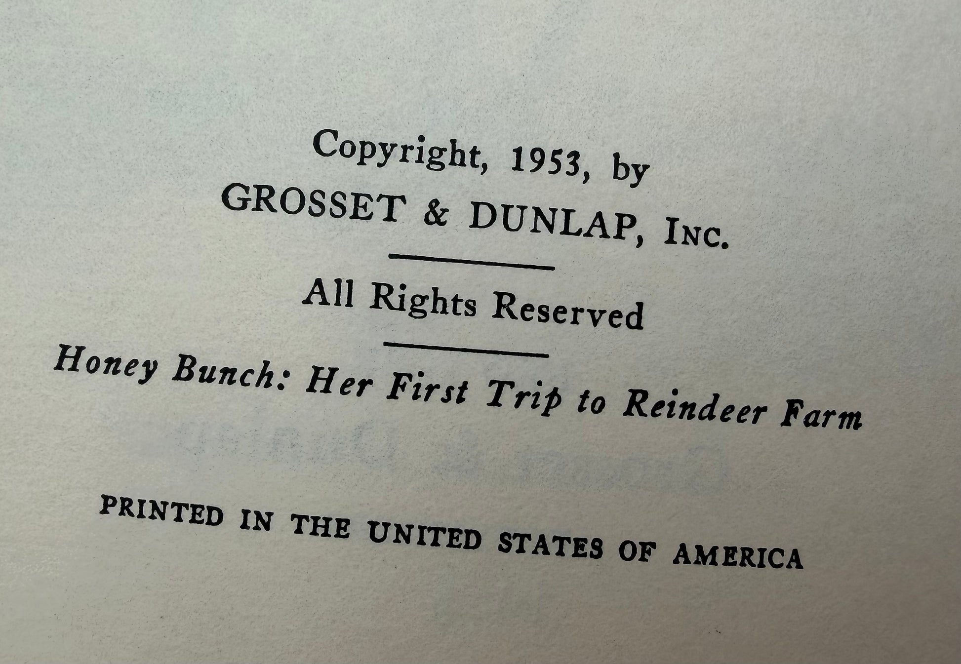 1953. Honey Bunch: Her first trip to reindeer farm. Vintage book