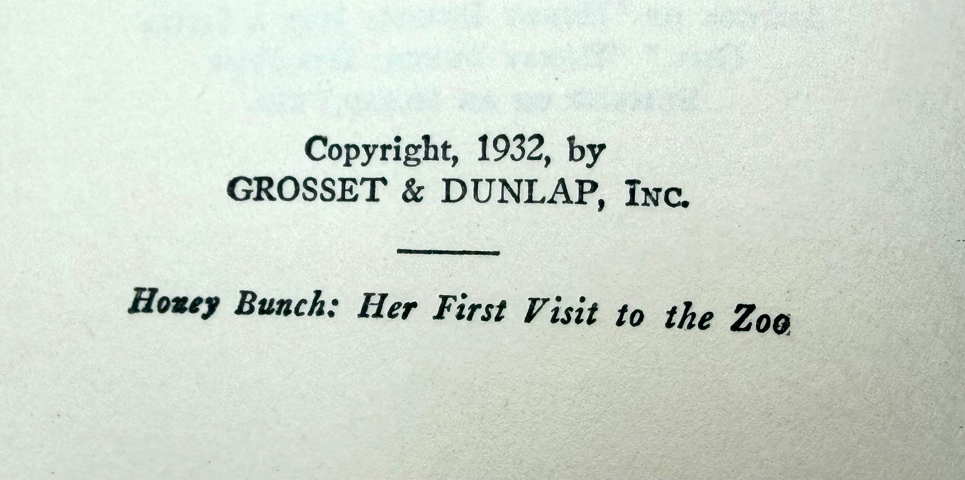 From 1932. Honey Bunch: Her First visit to the zoo Vintage book