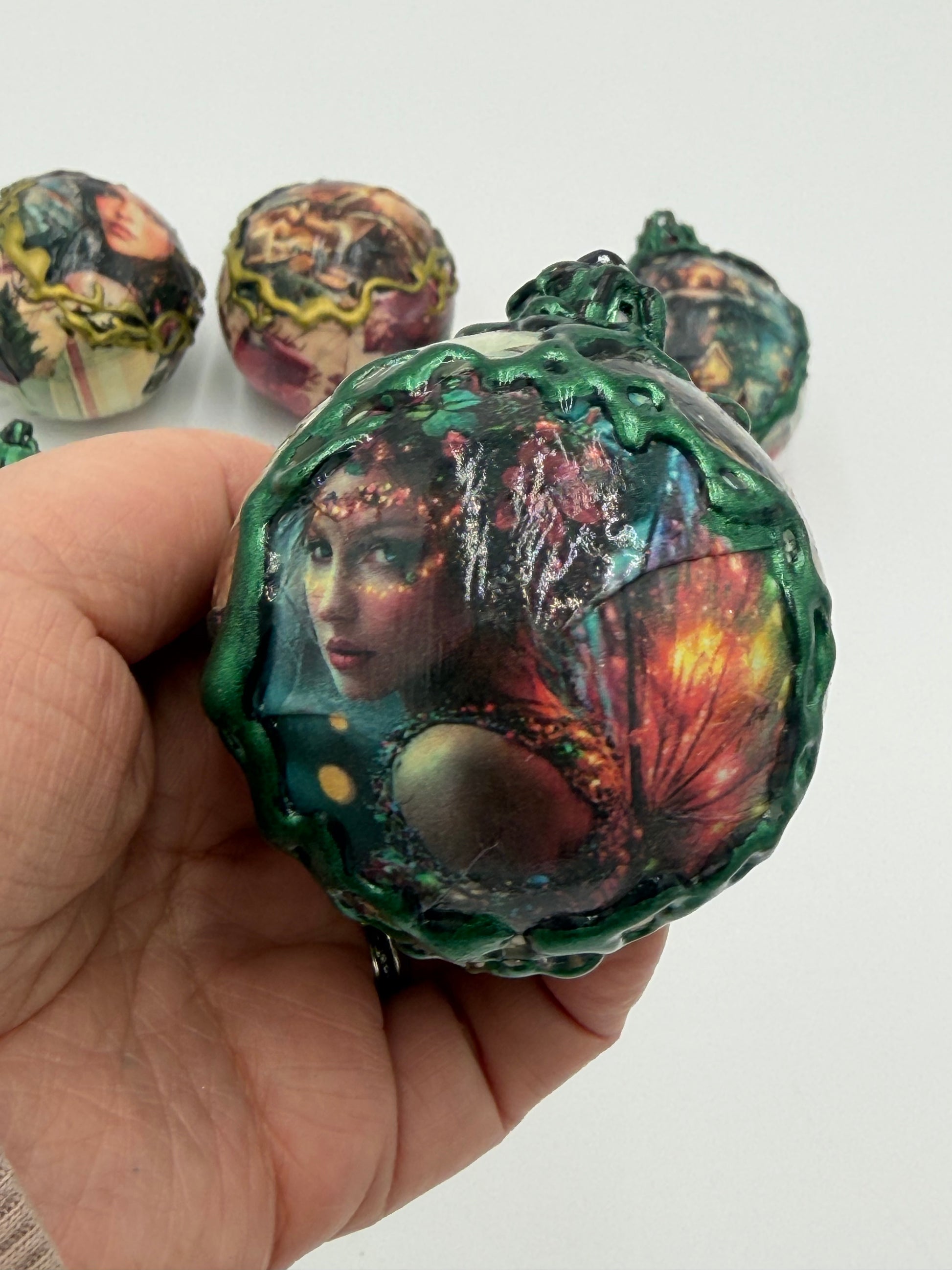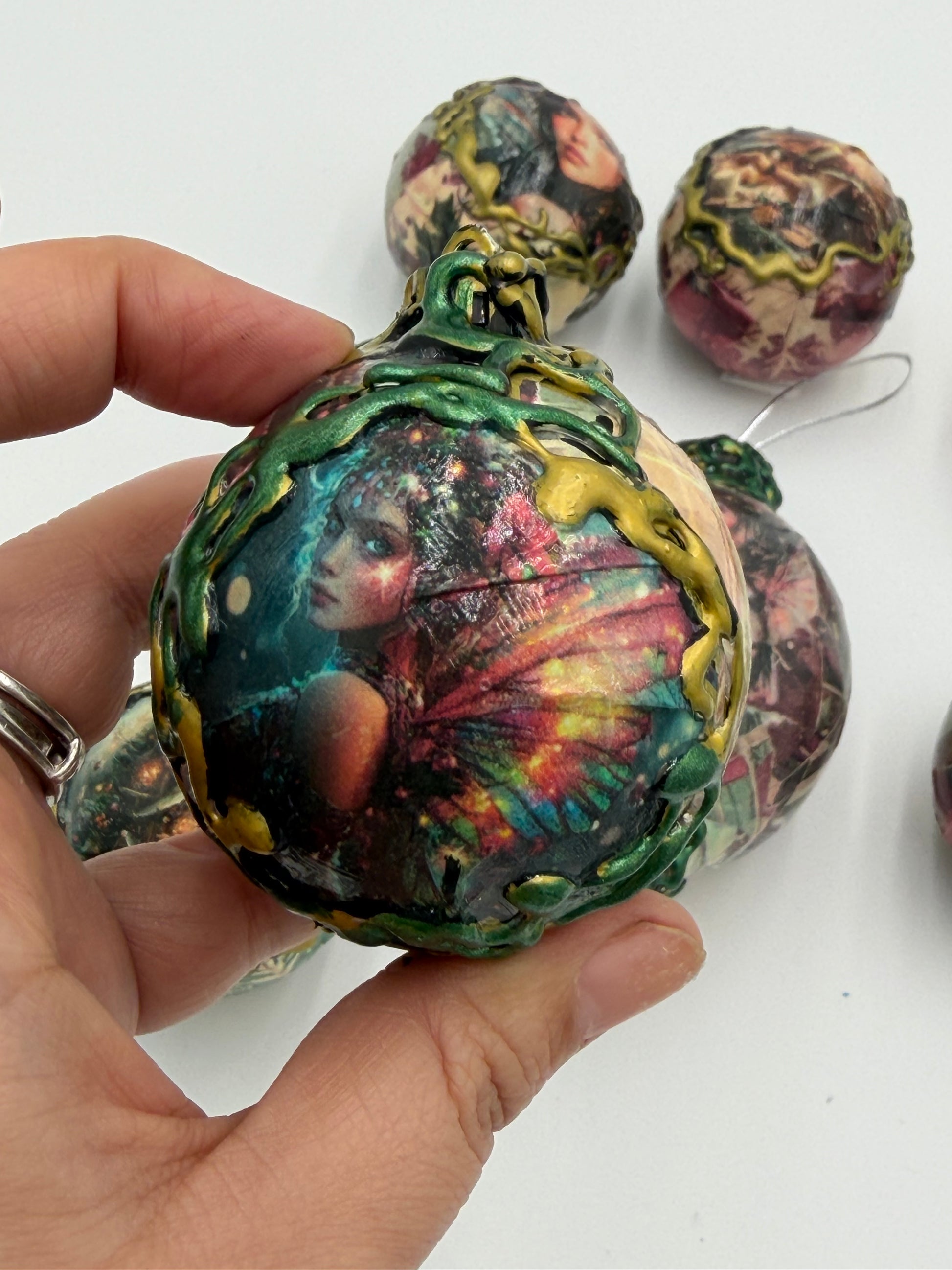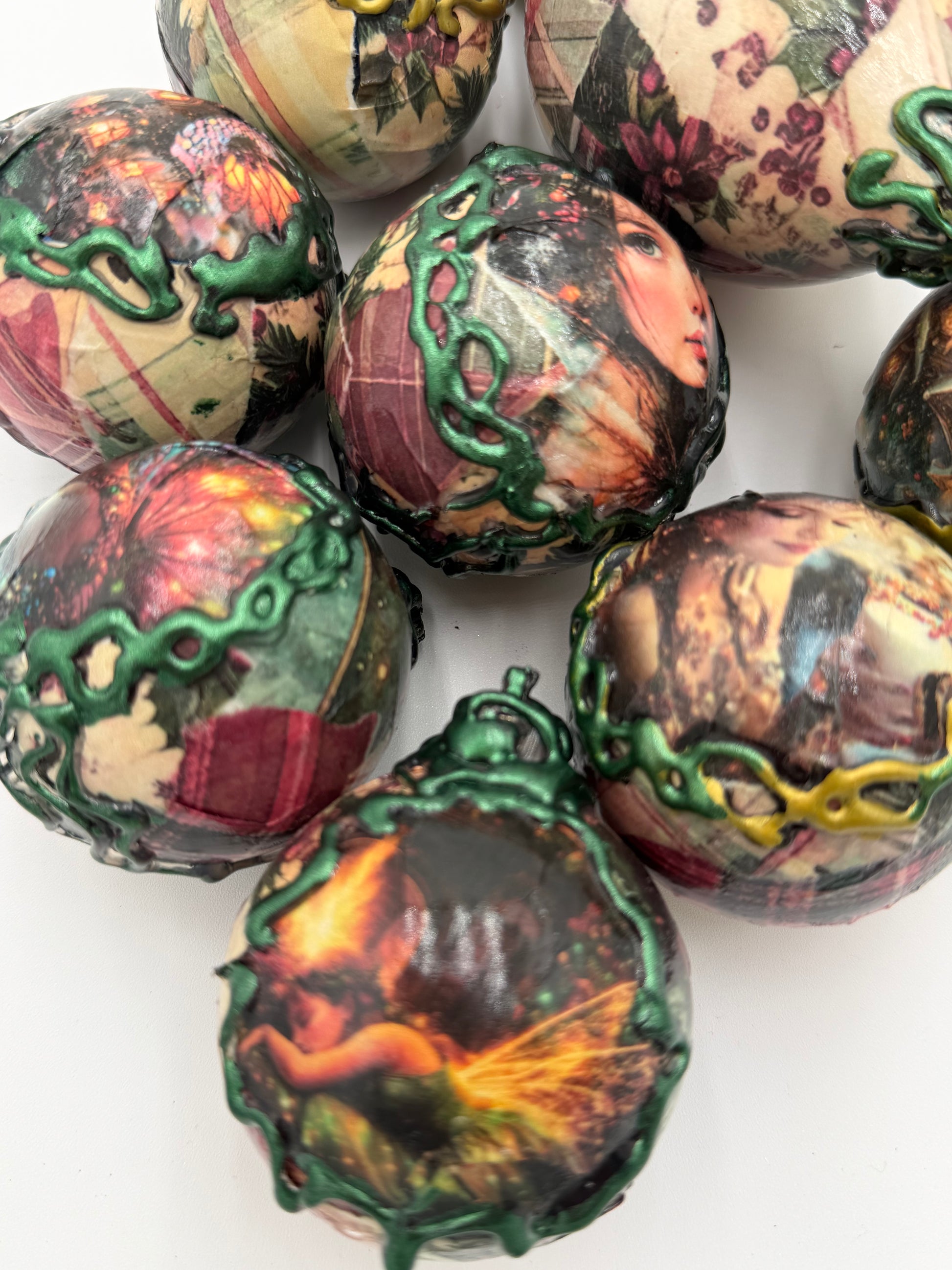 Decorate your tree sustainably with our Jolly Pixies 🧚 Christmas Ornament 12 pcs set. Made from recycled plastic and hand-decorated with hot glue feligrés designs, each ornament is a unique blend of eco-friendly and festive. Bring some mindful cheer to your holiday decor with images from the mindfullimage kit, featuring jolly pixies.